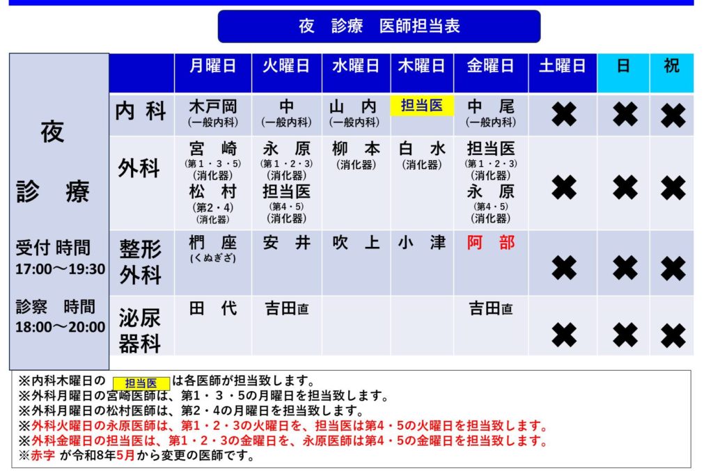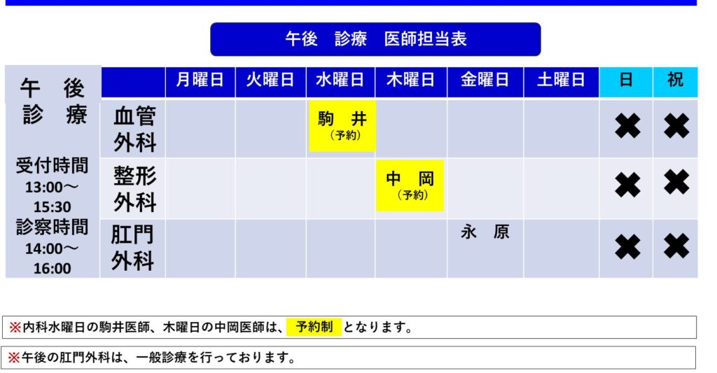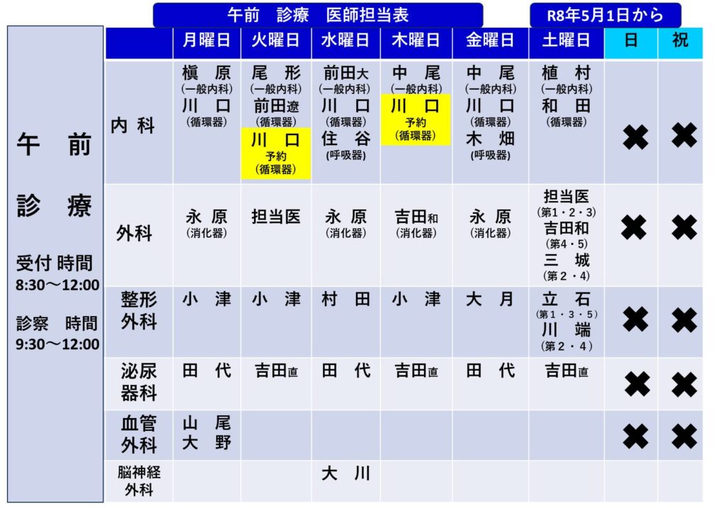 外来医師担当表