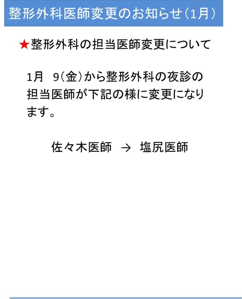 整形外科医師変更のお知らせ(R8年1月より)